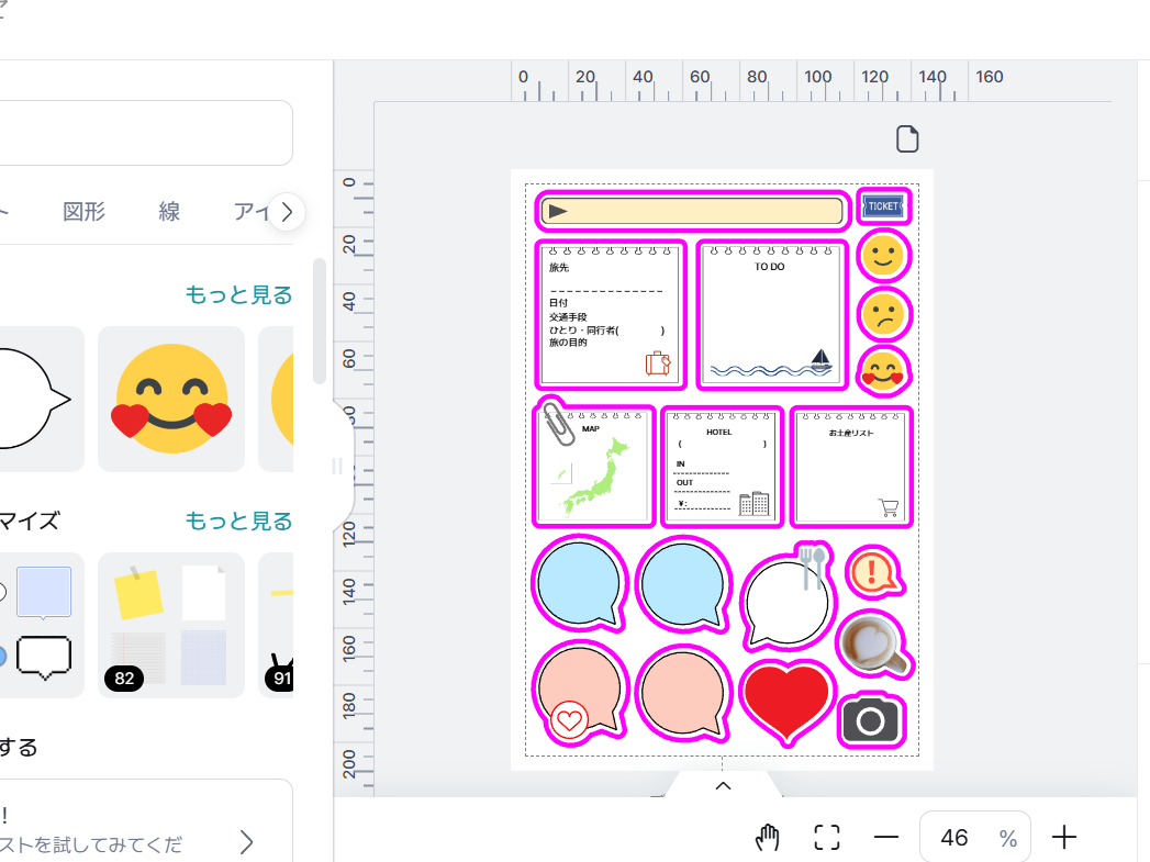 最後は、全てのモチーフのまわりにピンク色のカットラインが生成されました。