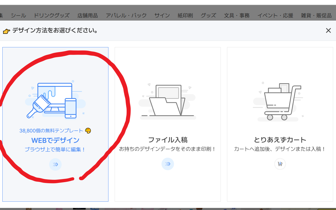自分のデータでシールを作る場合はファイル入稿を選びましょう。