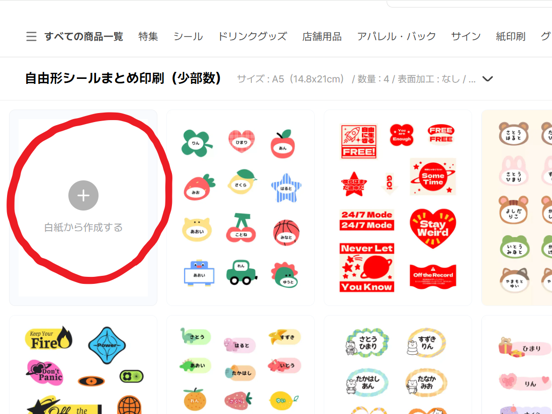 今回は自分好みのシールが作りたかったので、白紙から作成するを選びました。