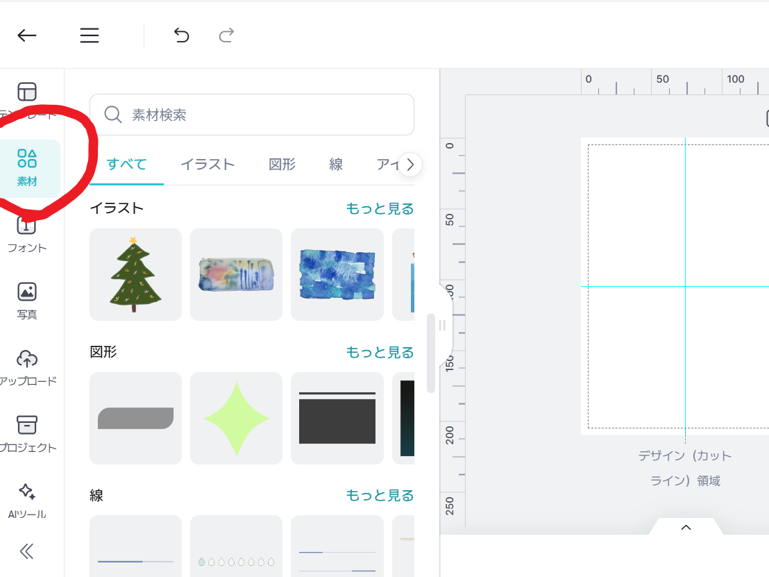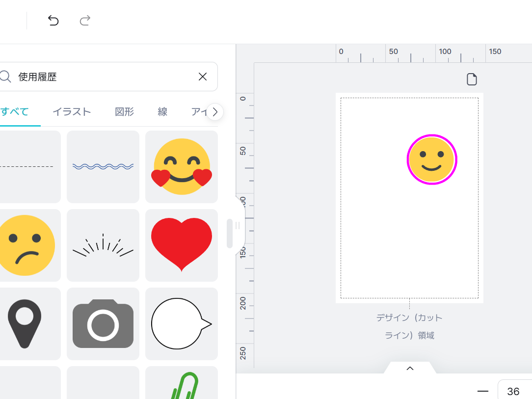 左側にあるニコちゃんマークの素材をクリックすると、デザインエリアにニコちゃんが現れました。