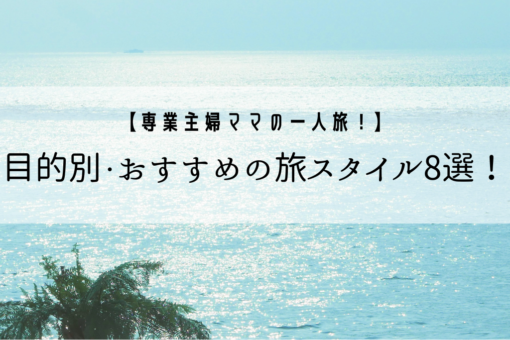 今回は、専業主婦ママにおすすめの「目的別・一人旅のスタイル」を8つをご紹介します。